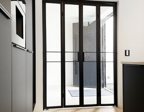 Wir bieten Ihnen eine große Auswahl an Lofttüren mit Faltmechanismen, die in verschiedenen Stilen, Materialien und Oberflächen erhältlich sind. Unser Team von Experten arbeitet mit Ihnen zusammen, um eine Tür zu entwerfen und zu installieren, die Ihr Interieur ergänzt, die Gesamtausstrahlung Ihres Raums erhöht und Ihren praktischen Anforderungen entspricht.